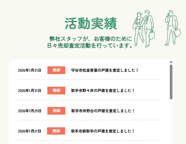 プライベートな情報は伏せながら、日々どんな物件の査定があるの確認できるようになっております。